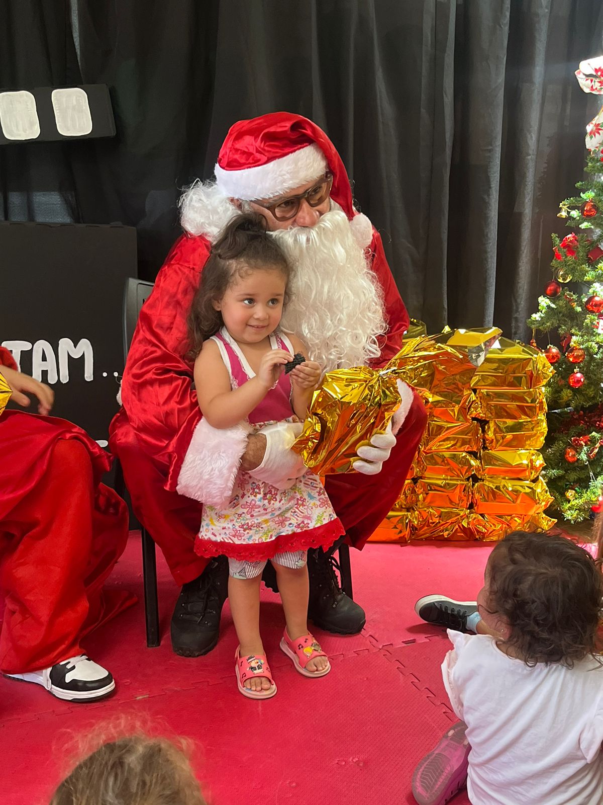 Entrega dos tênis de natal! Papai Noel estava presente! Diz alegre e abençoado.